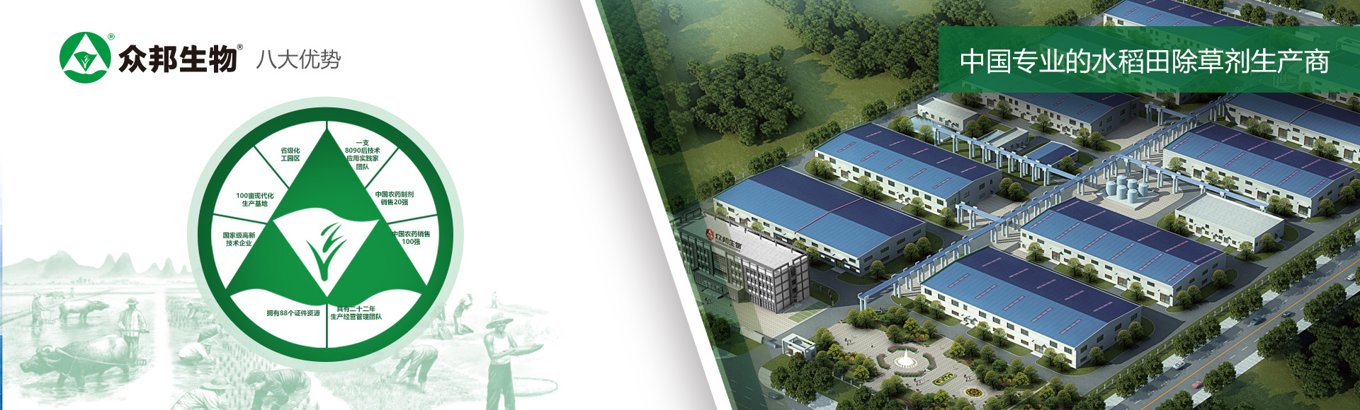 安徽眾邦生物工程有限公司成立于1997年12月。公司以新型生物農(nóng)藥為主導(dǎo),兼顧生化復(fù)配和化學(xué)復(fù)配劑型農(nóng)藥研發(fā)、生產(chǎn)與銷(xiāo)售。